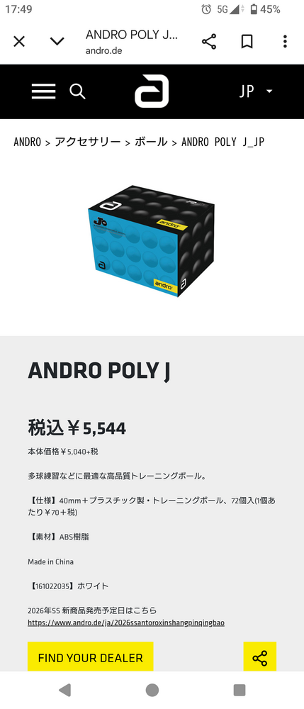 アンドロ練習球ポリSは廃盤になり、今年4月からさらにパワーアップしたアンドロ練習球ポリJを支給して下さる予定です。練習球は試合球に近いほうが断然良いので有り難いです。